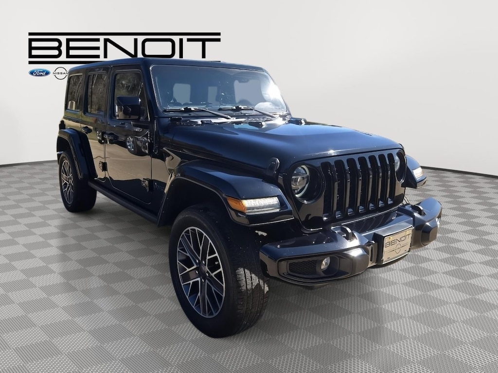 2022 Jeep Wrangler 4xe Unlimited Sahara High Altitude Hydro Blue Pearlcoat with Black Interior.